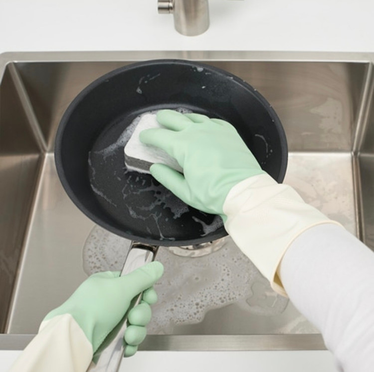 تصمیم دارید همین امروز خانه را تمیز کنید و وسایل آشپزخانه را بشویید؟ استفاده از مواد شوینده قوی میتواند سلامت دستان شما را به خطر بیندازد. به همین منظور بهتر است از دستکشهای آشپزخانه مانند دستکش ظرفشویی ایکیا مدل RINNIG استفاده کنید. این محصول سایزبندی و رنگبندی هم دارد.