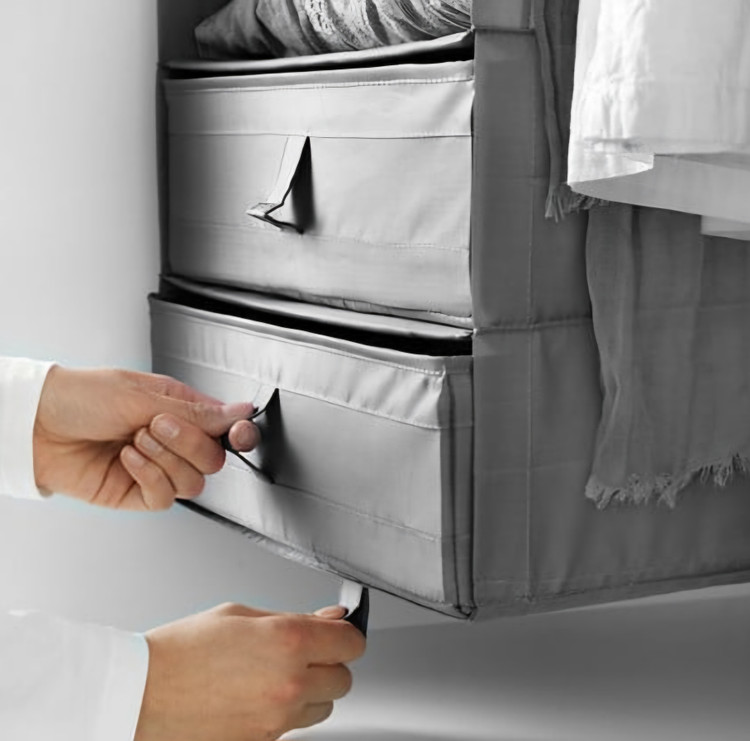 بررسی آویز لباس پارچه ای ۶ طبقه ایکیا مدل SKUBB رنگ خاکستری