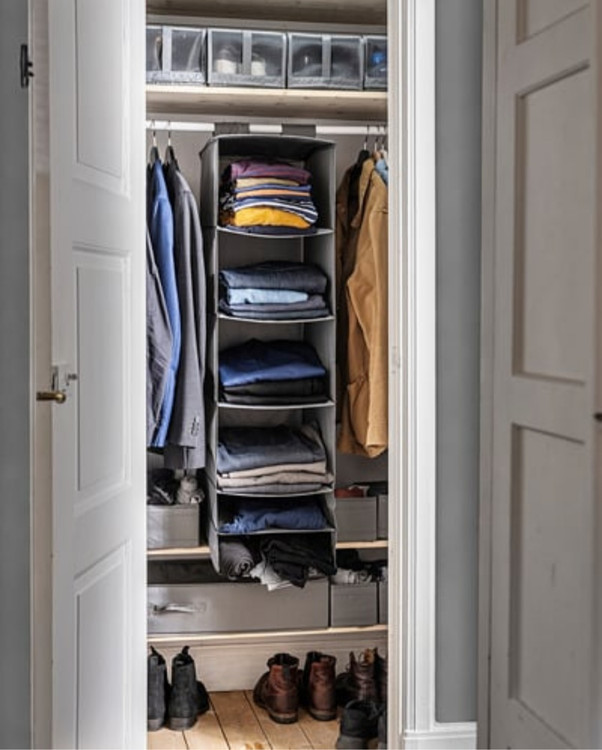 ارگانایزر را از طریق دستهاش روی میله جا لباستان آویزان کنید و در کنار سایر لباسها و آویزها از خانههای آن هم برای نگهداری لباس یا وسایلتان استفاده کنید. البته که نباید این ارگانایزر را زیاد سنگین کرد. روسریهای زیادی دارید یا جورابهای مختلف که ایدهای برای ذخیرهسازیشان به ذهنتان نمیرسد.