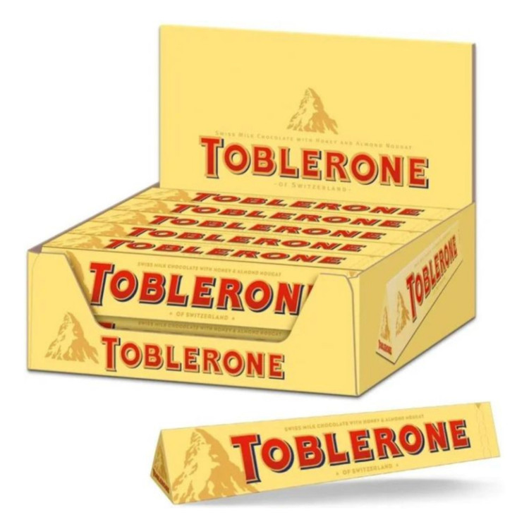 خرید TOBLERONE شکلات شیری 100 گرمی تابلرون که شکلات شیری تابلرون شکلات شیری سوییسی با ترکیبی از عسل، بادام و نوقا است.