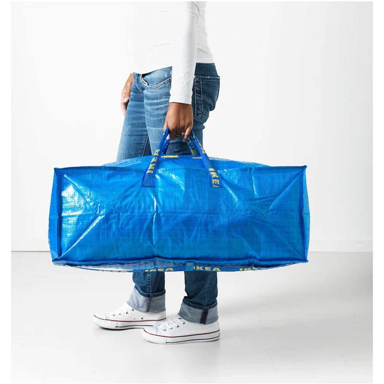 اگر در حال جمعآوری وسایل برای تعویض خانه هستید، با میخواهید تعداد زیادی لباس و کتاب را به مکانی دیگر منتقل کنید، پیشنهاد ما تهیه یک عدد کیسه حمل وسایل ایکیا FRAKTA است. این کیسه با زیپ بسته میشود و جنس محکمی دارد. همچنین دو نوع دسته برای حمل آن در نظر گرفته شده است.