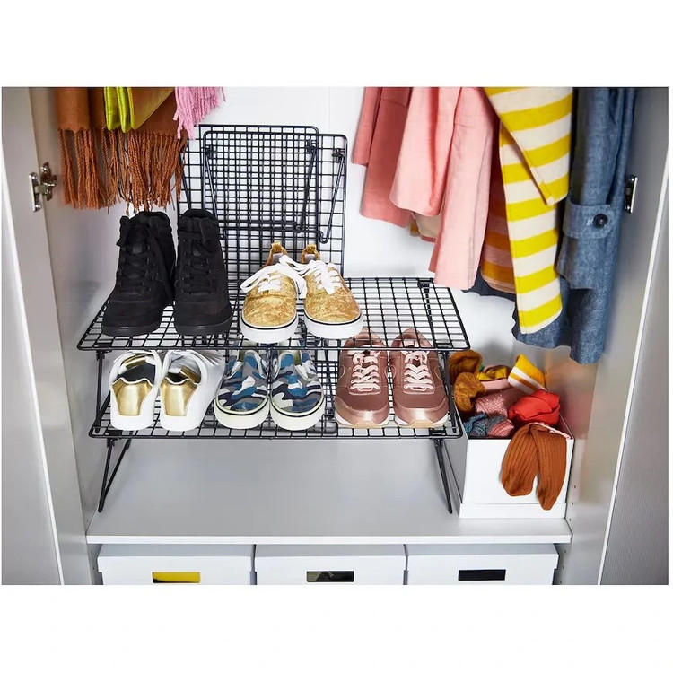 جاکفشی فلزی ایکیا مدل GREJIG خاکستری سایز ۵۸*۲۷*۱۷ سانتیمتر، یکطبقه توریشکل است که میتواند تا ۳ جفت کفش را روی خود جای دهد. چنانچه نیاز به فضای بیشتری دارید میتوانید تا ۳ طبقه دیگر از این مدل را روی یکدیگر بگذارید و استفاده کنید.